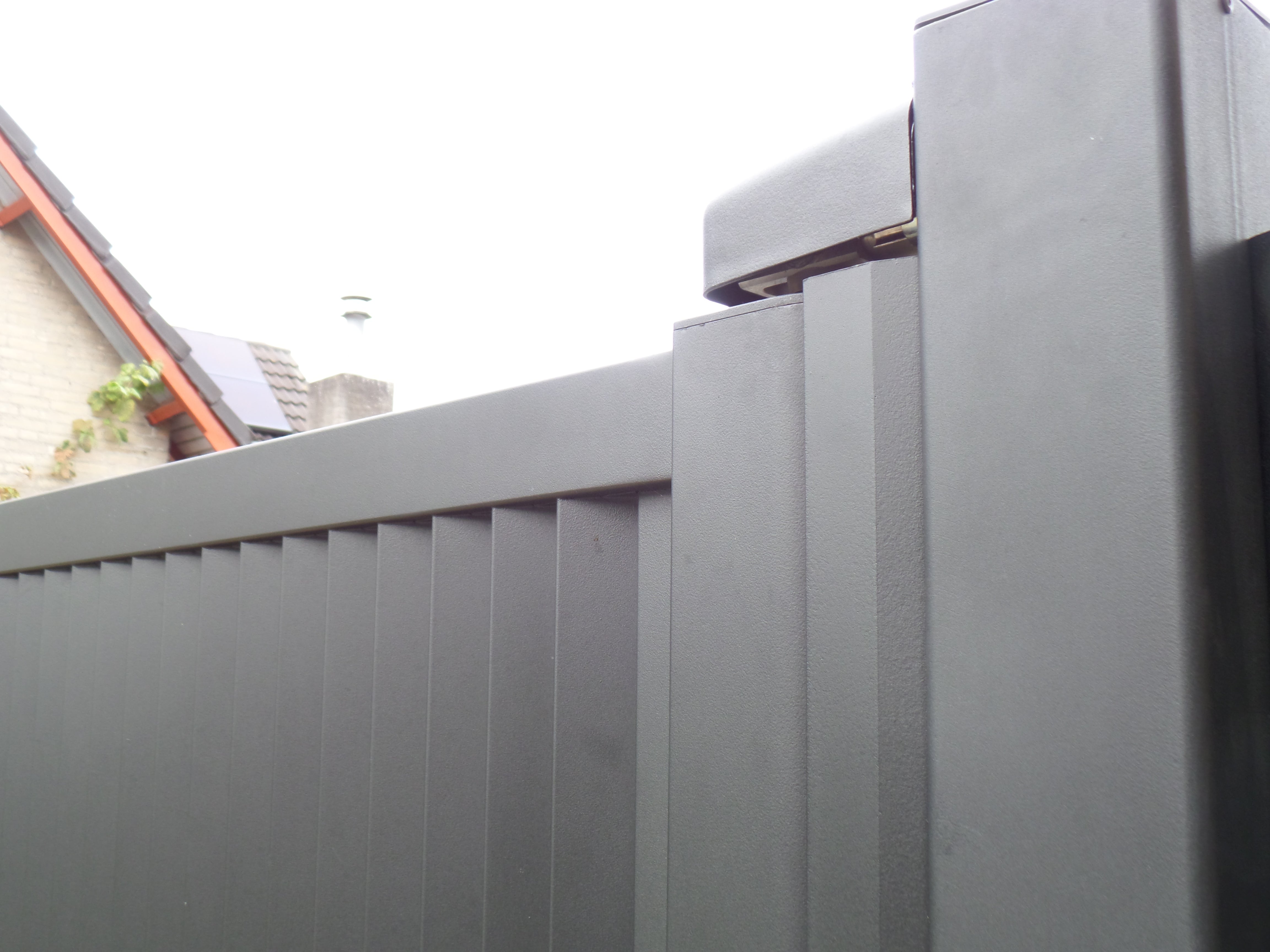 De poort is gemaakt van hoogwaardig aluminium. Licht, sterk en bestand tegen weer en wind. En wat ook telt: hij oogt strak. Zakelijk of particulier? De stijl past zich moeiteloos aan.